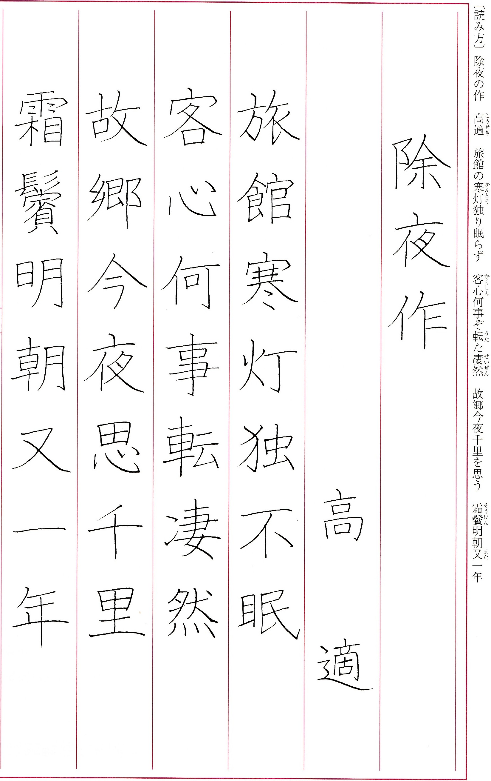 ご自宅に手本(5課題)が届きます。